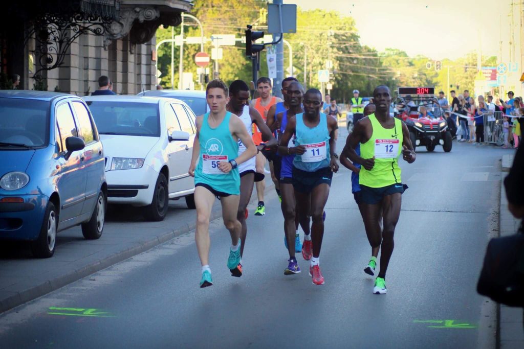 Wracając do biegu, punktualnie o 19 ruszyła maszyna. Od początku uformowała się siedmioosobowa grupa liderów, która składała się z sześciu biegaczy z Afryki oraz jednego Polaka – Kamila Jastrzębskiego z Kraśnika. Jak w skrócie wyglądała rywalizacja? Były momenty, że Kamil prowadził bieg w równym tempie. Biegacze z Afryki postawili na „selekcję naturalną”. Co to oznacza? Rwane tempo. Co jakiś czas, jakiś zawodnik podkręcał tempo, aby zmęczyć swoich rywali. Na półmetku sytuacja wyglądała tak, jakby wszyscy zawodnicy w czołówce mieli asa w rękawie. To rzadki przypadek, aby na jednym biegu spotkali się czarnoskórzy zawodnicy, którzy reprezentują różne grupy, a przez to są zmuszeni do walki na całego. Zazwyczaj wygląda to tak, że przyjeżdża jedna grupa, która dzieli czołowe lokaty między sobą.